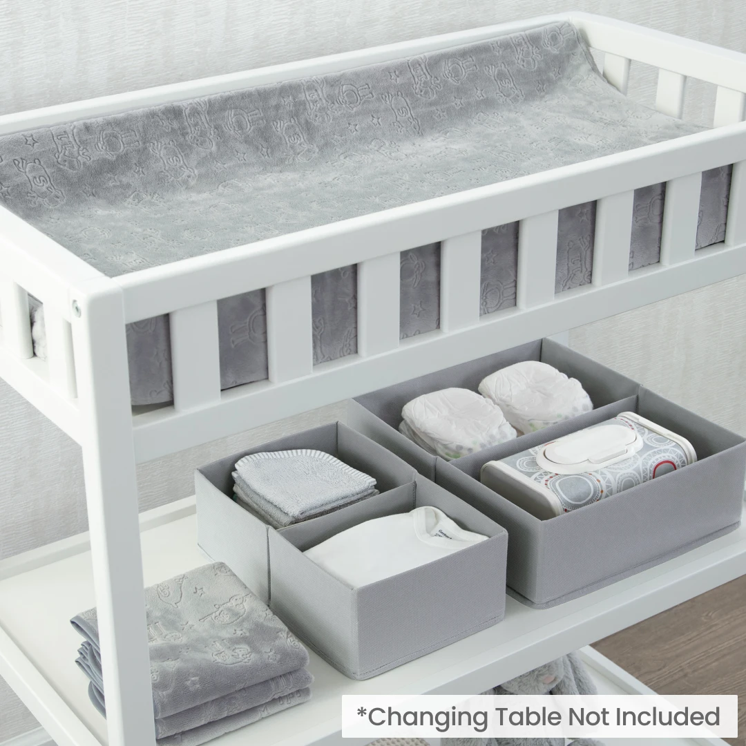 7-Piece Essential Changing Table Set – Newborn Baby Gift Set For Boys And Girls – Set Includes Changing Pad, Plush Changing Pad Cover, 3 Changing Pad Liners And 2 Storage Bins