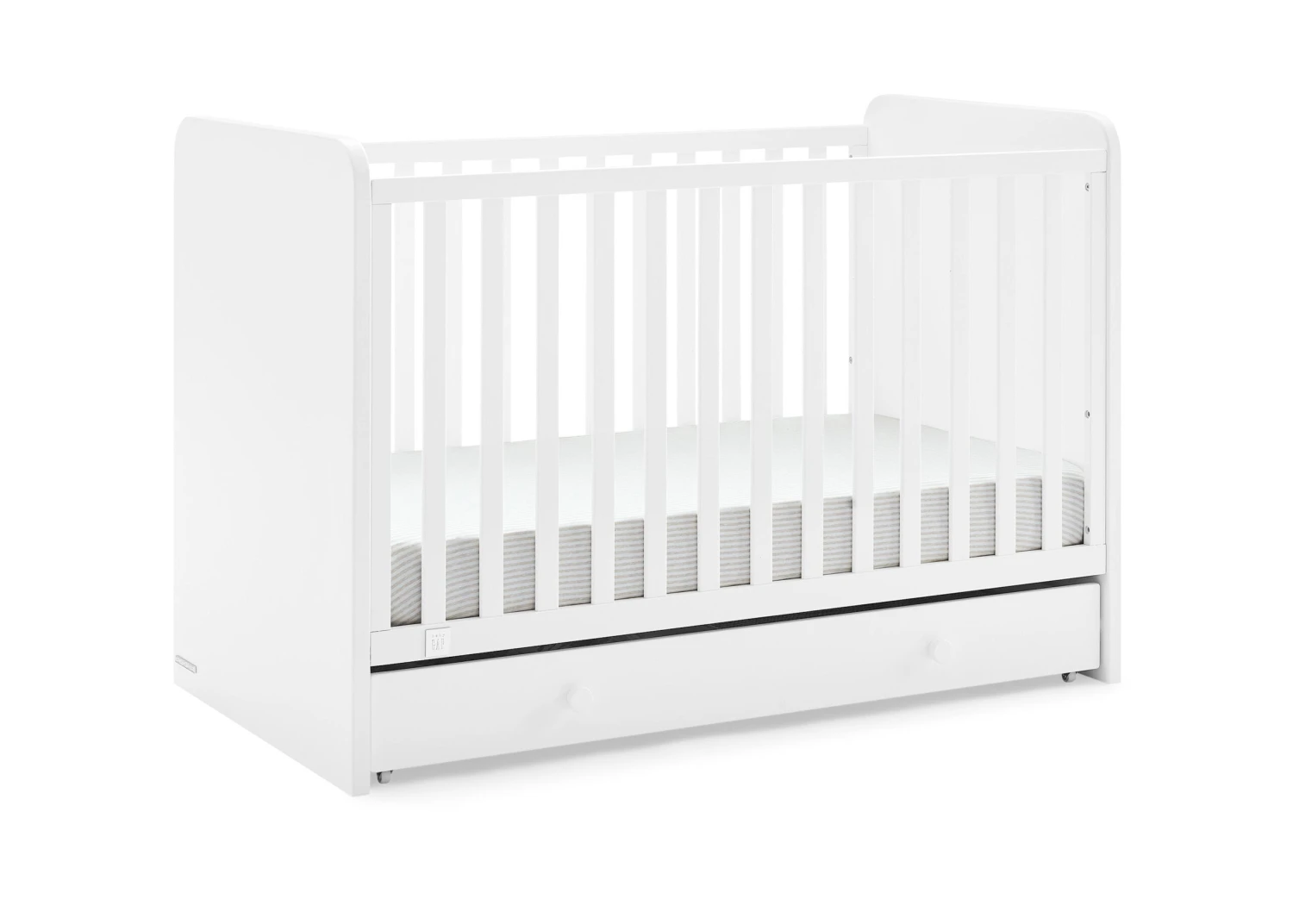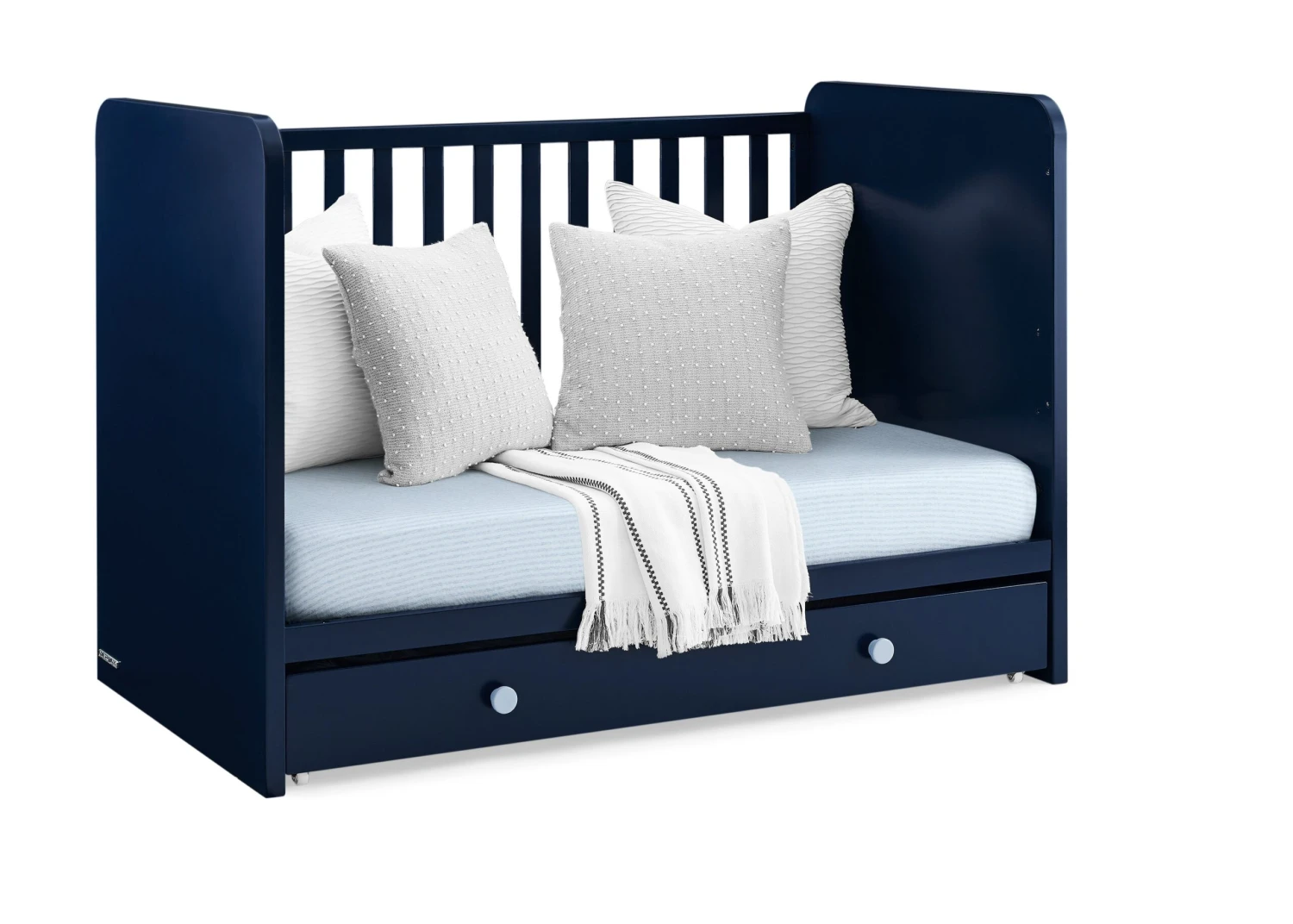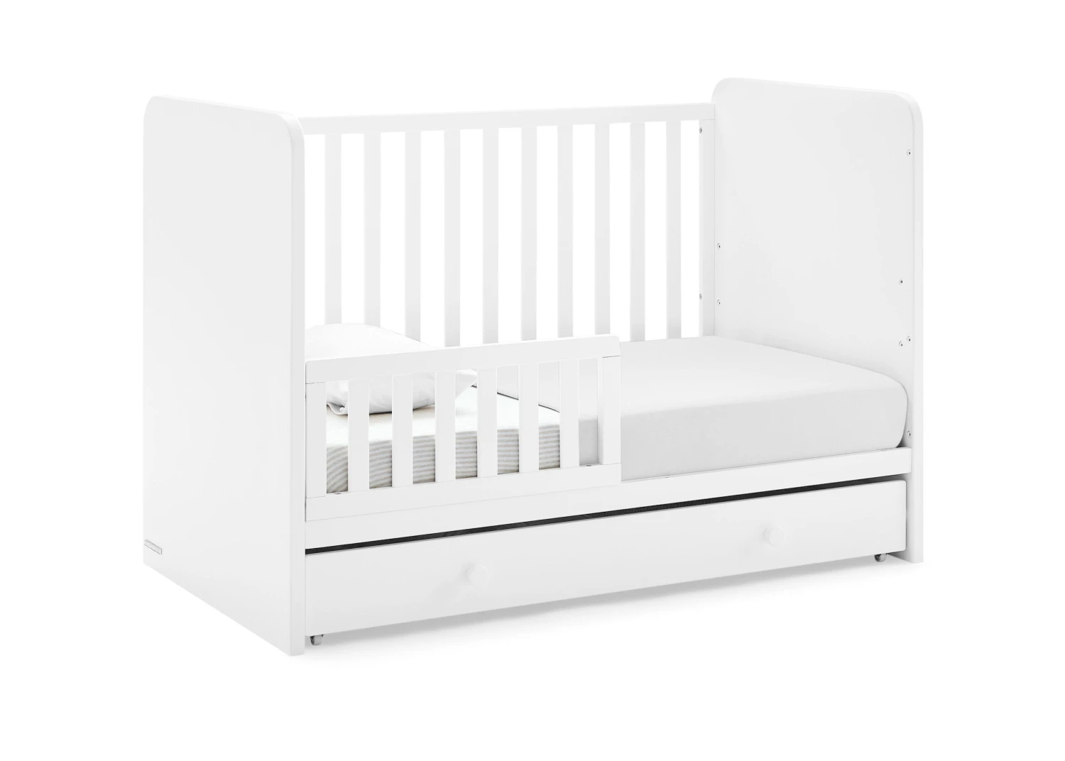 Modern design, necessary storage. The babyGap Graham 4-in-1 Convertible Crib with Storage Drawer is a multifunctional solution for your nursery. Graham’s included storage drawer will help make the most of kids’ bedroom space—giving you a place to easily tuck away spare bedding or clothes. Thoughtfully made to grow with your baby, the crib’s adjustable mattress support with three convenient positions allows you to lower the mattress height as they get older. When your child is ready, its versatile design easily adapts from crib to a cozy toddler bed, daybed and sofa (conversion rail #W173726 sold separately). Plus, it’s GREENGUARD Gold Certified, which means it’s built to contribute to cleaner air for a healthy home. Available in Bianca White, Navy/Light Blue, Grey/Dark Grey and Blush/Dark Pink. Easily mix, match, and layer with other items from the babyGap Furniture and Bedding Collection.