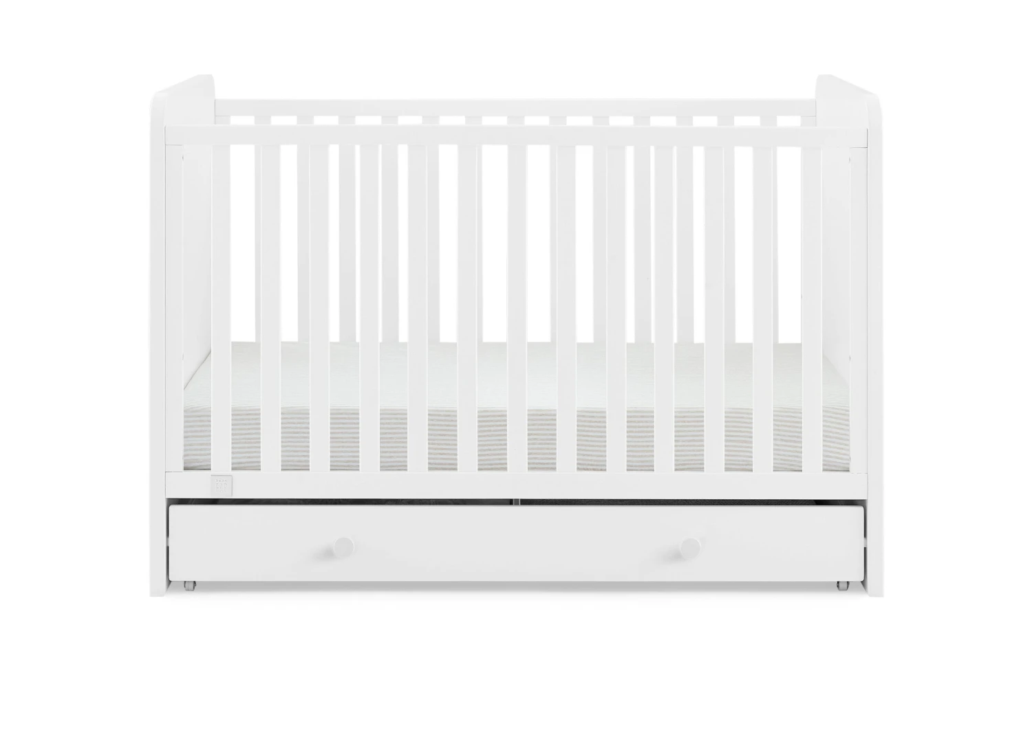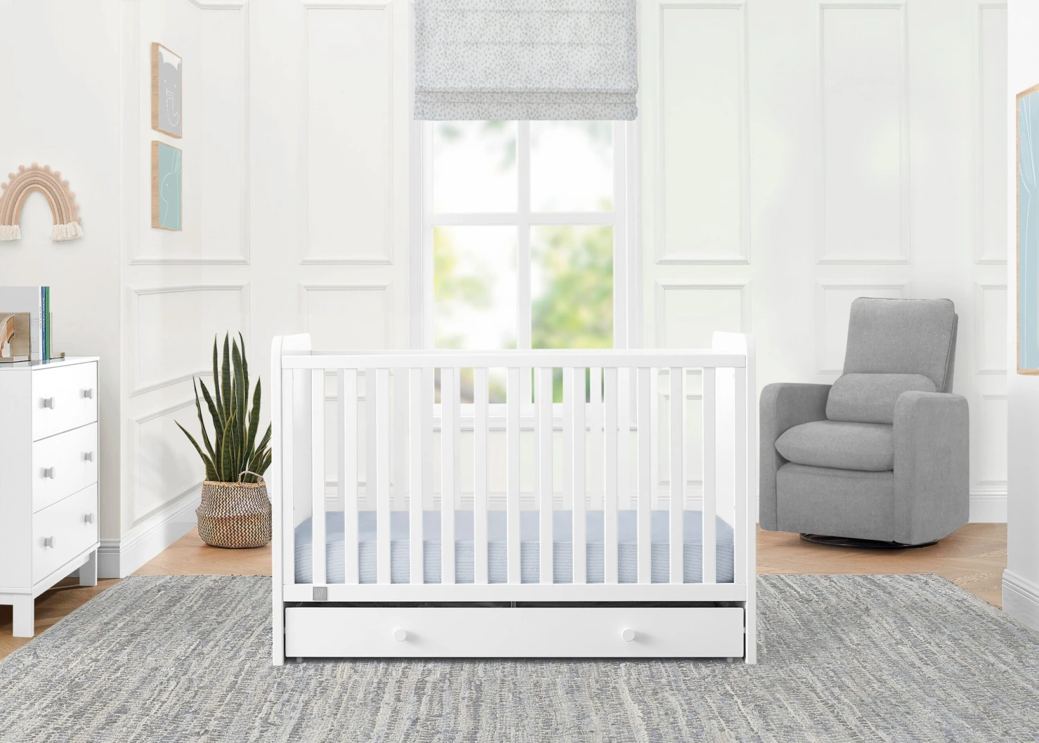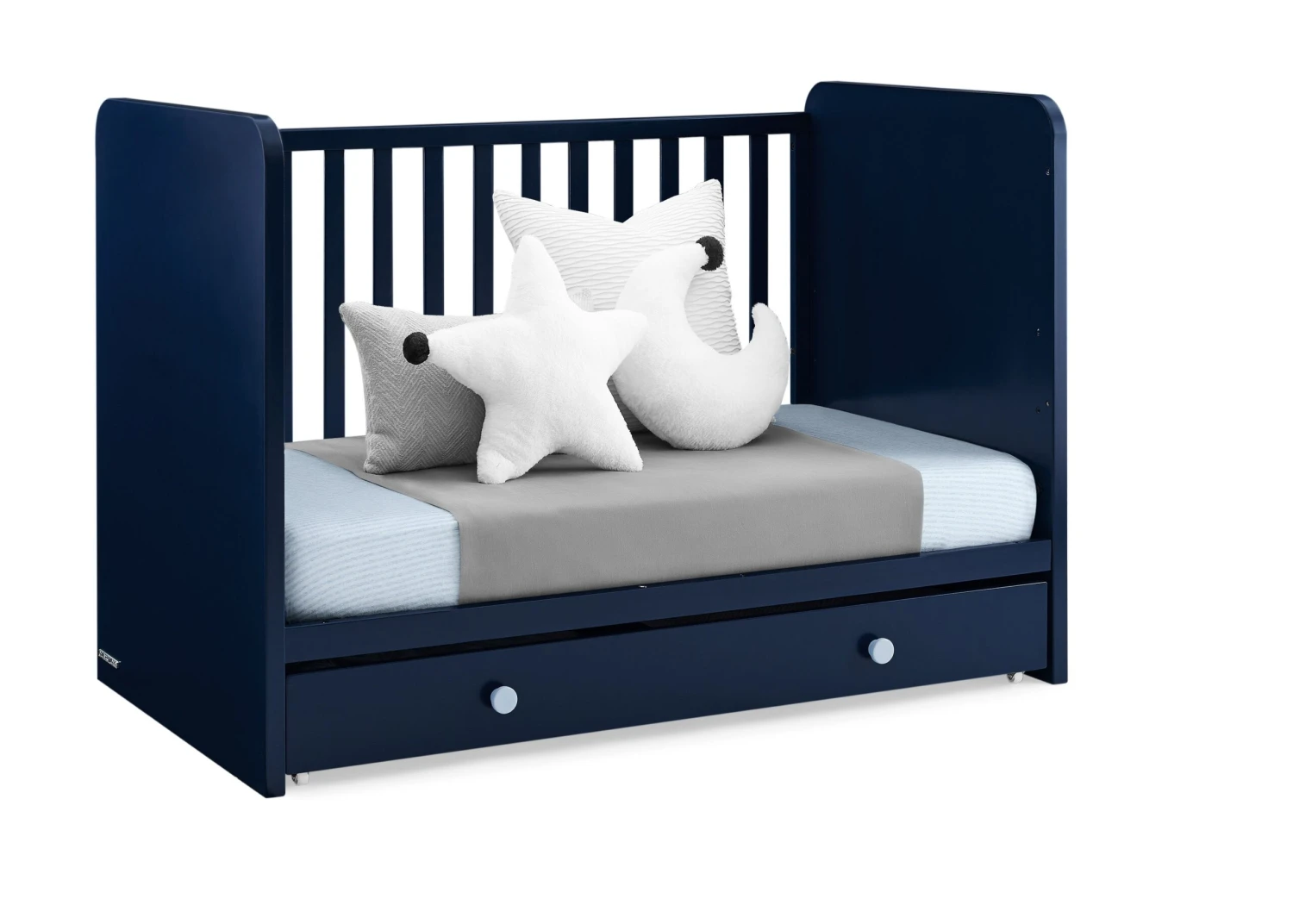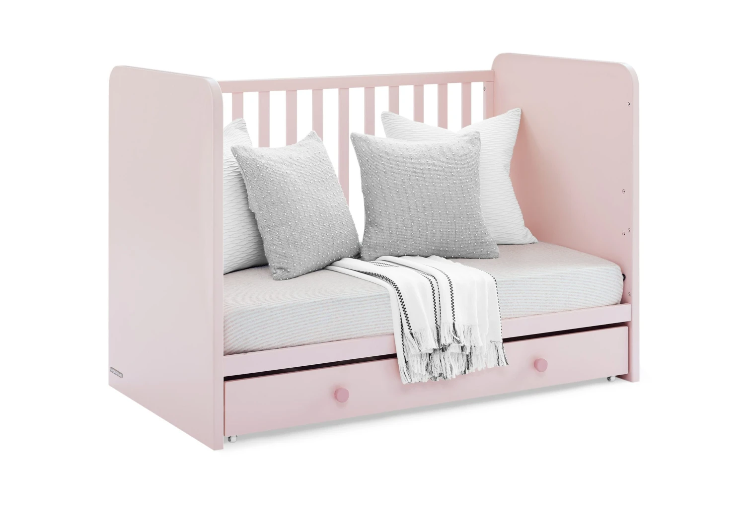 Modern design, necessary storage. The babyGap Graham 4-in-1 Convertible Crib with Storage Drawer is a multifunctional solution for your nursery. Graham’s included storage drawer will help make the most of kids’ bedroom space—giving you a place to easily tuck away spare bedding or clothes. Thoughtfully made to grow with your baby, the crib’s adjustable mattress support with three convenient positions allows you to lower the mattress height as they get older. When your child is ready, its versatile design easily adapts from crib to a cozy toddler bed, daybed and sofa (conversion rail #W173726 sold separately). Plus, it’s GREENGUARD Gold Certified, which means it’s built to contribute to cleaner air for a healthy home. Available in Bianca White, Navy/Light Blue, Grey/Dark Grey and Blush/Dark Pink. Easily mix, match, and layer with other items from the babyGap Furniture and Bedding Collection.
