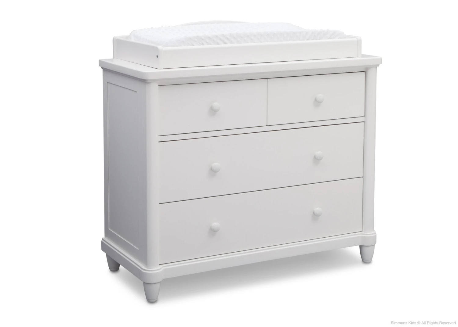 The Belmont 4 Drawer Dresser with Changing Top is a must-have for any nursery! Topped with a removable changing topper, this sturdy dresser features four drawers in two sizes outfitted with safety stops that prevent the drawers from falling out. Its roomy interior has plenty of space for your little one ‘s growing wardrobe, and its sophisticated allows it to grow with them birth to adulthood