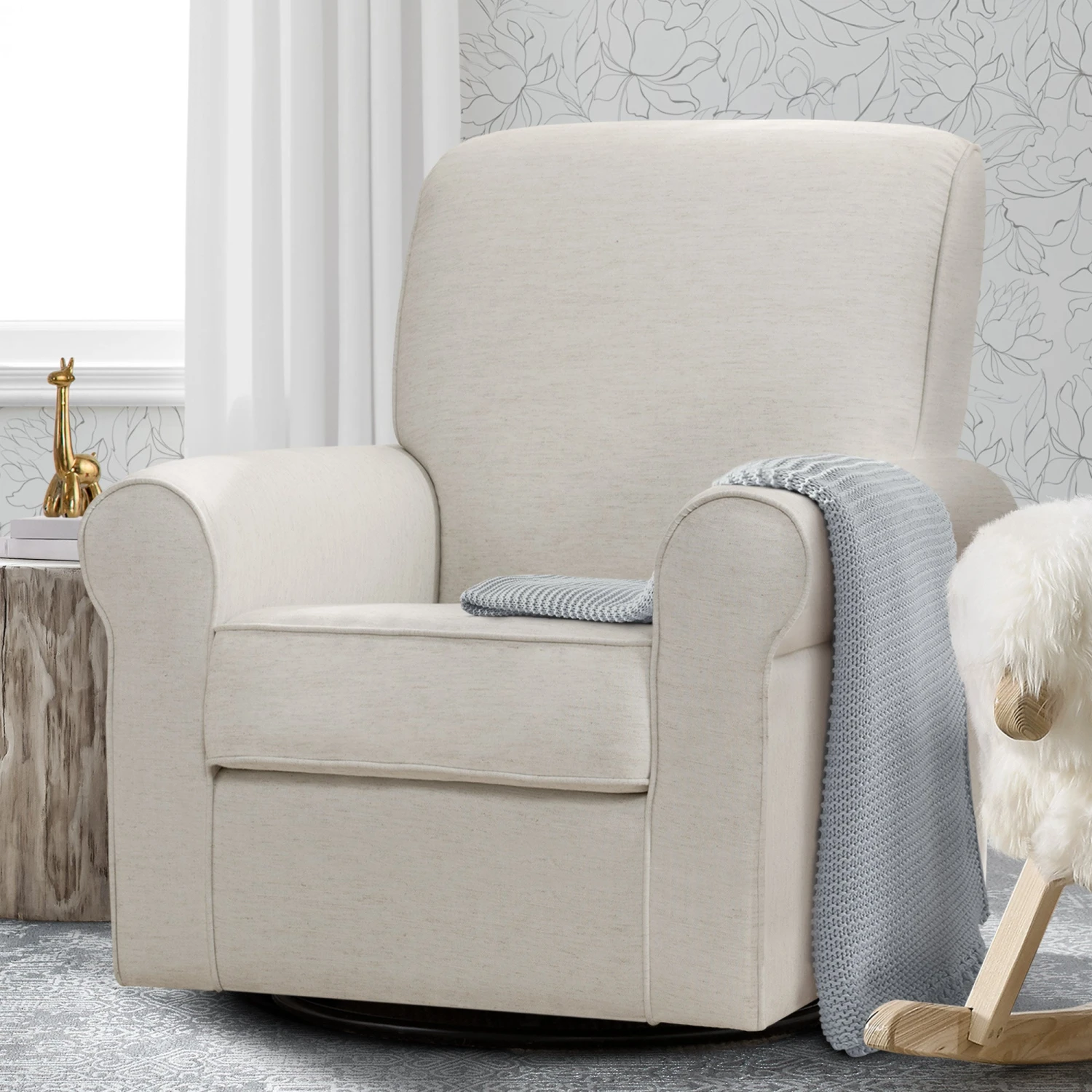Designed to create a warm and welcoming space for baby and parent, the Avery Glider features a timeless silhouette and a hidden metal gliding mechanism for smooth and long-lasting comfort.