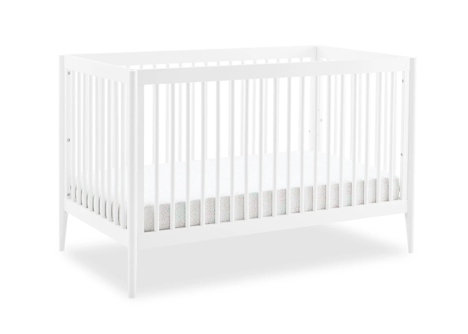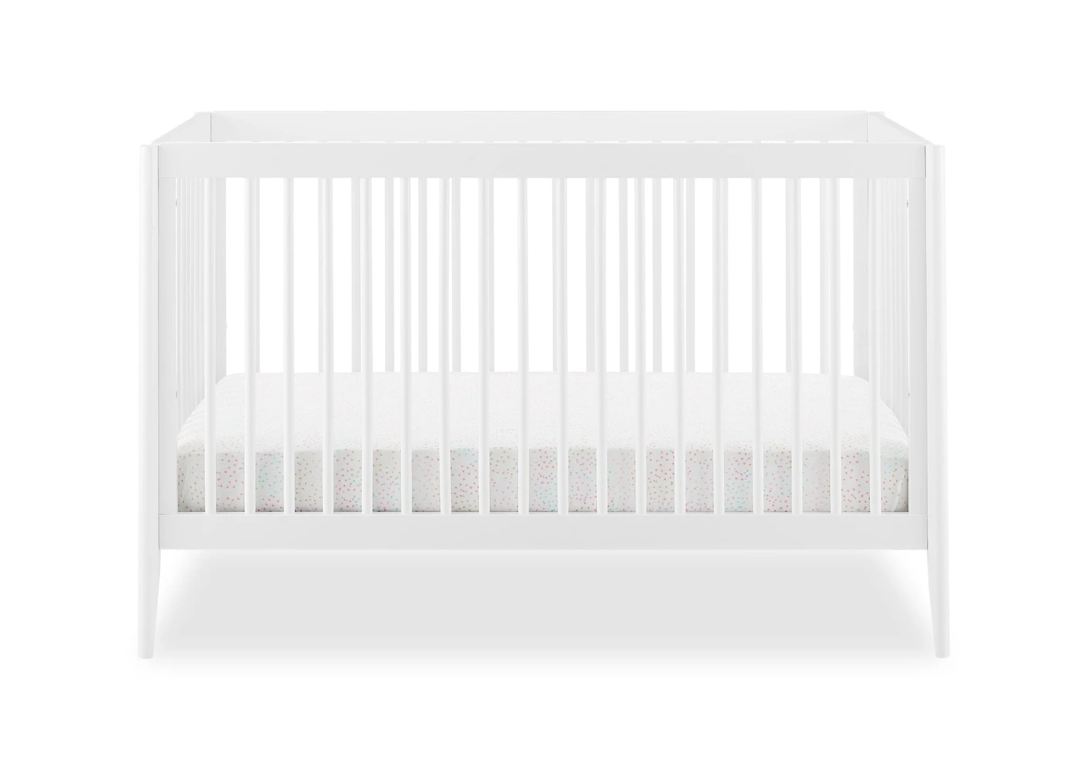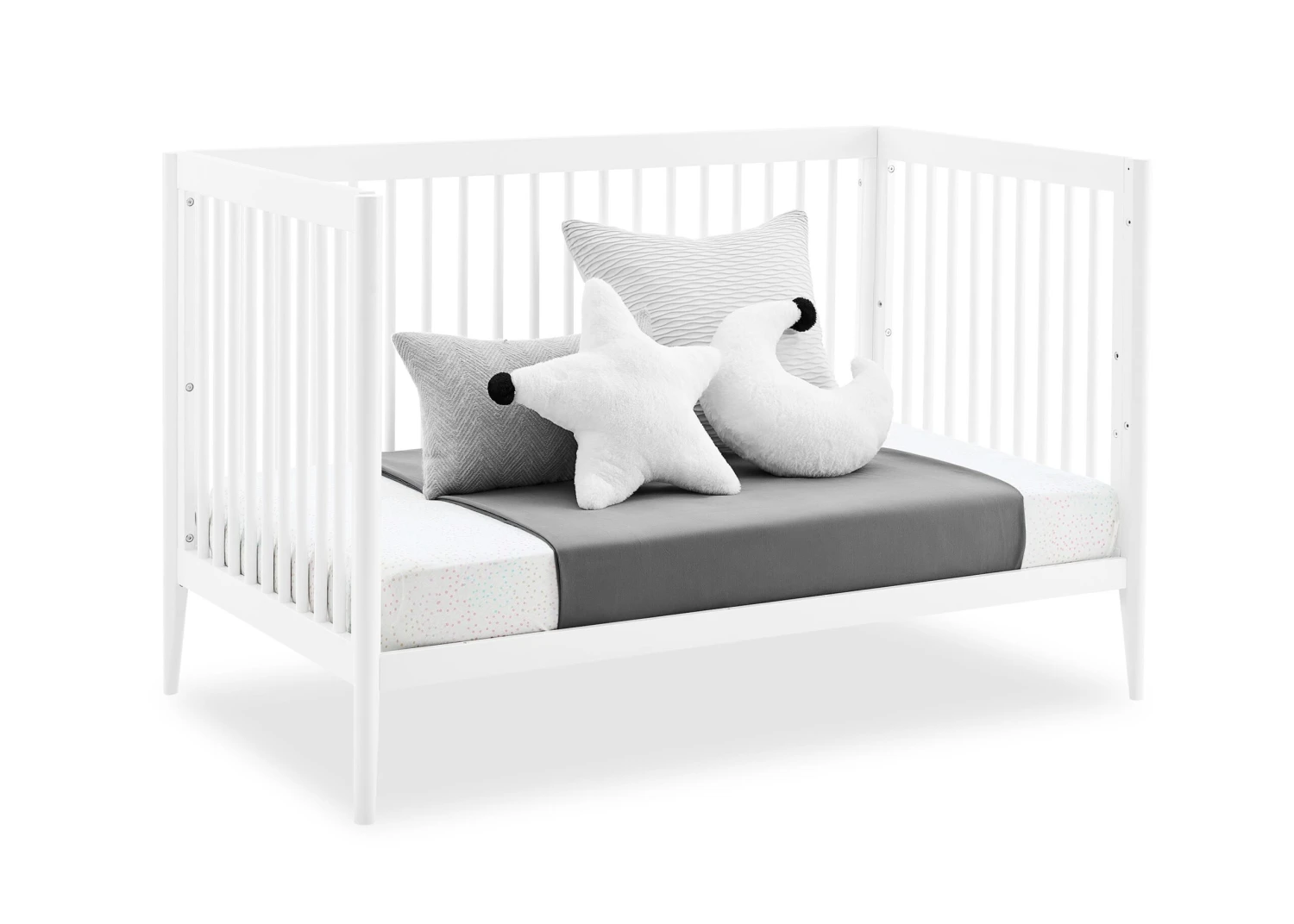 The Casey 6-in-1 Convertible Baby Crib by Delta Children will instantly elevate your nursery with its mid-century modern style. Clean lines, playful round spindles and cylindrical posts define this beautiful crib. Built to grow with your child, the Casey Crib features an adjustable height mattress that can be lowered as baby begins to sit or stand, plus it converts from a crib to a toddler bed, daybed, sofa, full size bed with headboard and footboard and full size bed with headboard only. Pair this crib with other pieces in the Casey Collection for a coordinated look.