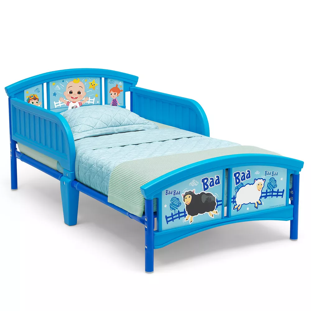 JJ wants a bed like big kids have, and so will your little one when they see this CoComelon Plastic Toddler Bed by Delta Children.