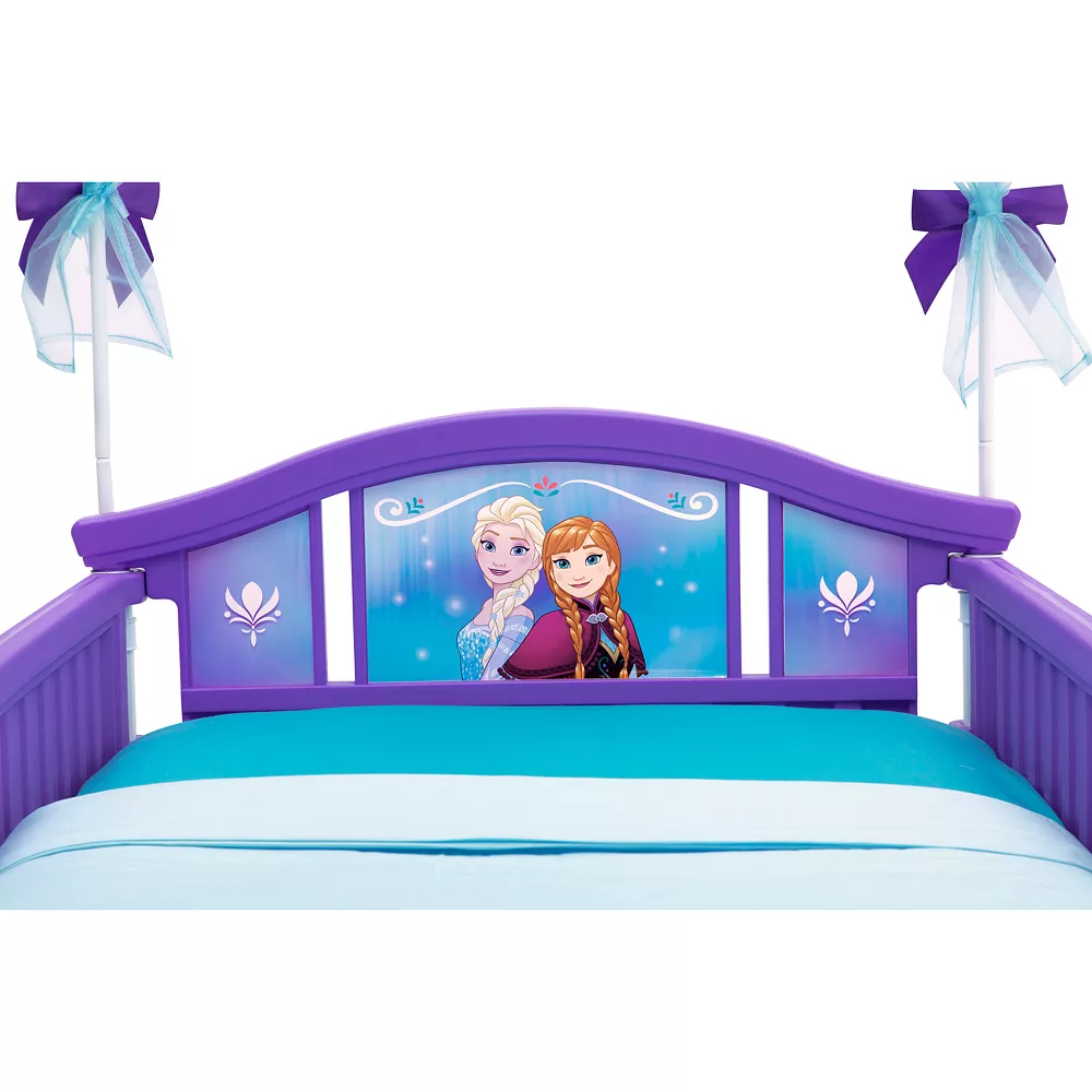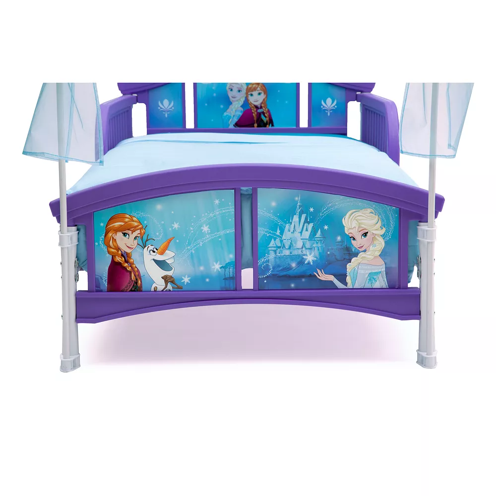 A cool bed fit for a (snow) queen, this Frozen Canopy Toddler Bed from Delta Children will cast a stylish spell on your girl’s room. Topped with a canopy and sleep rails on both sides, this sweet bed boasts colorful illustrations of Frozen’s Anna and Elsa, plus a low to the ground design that makes for easy ins and outs.