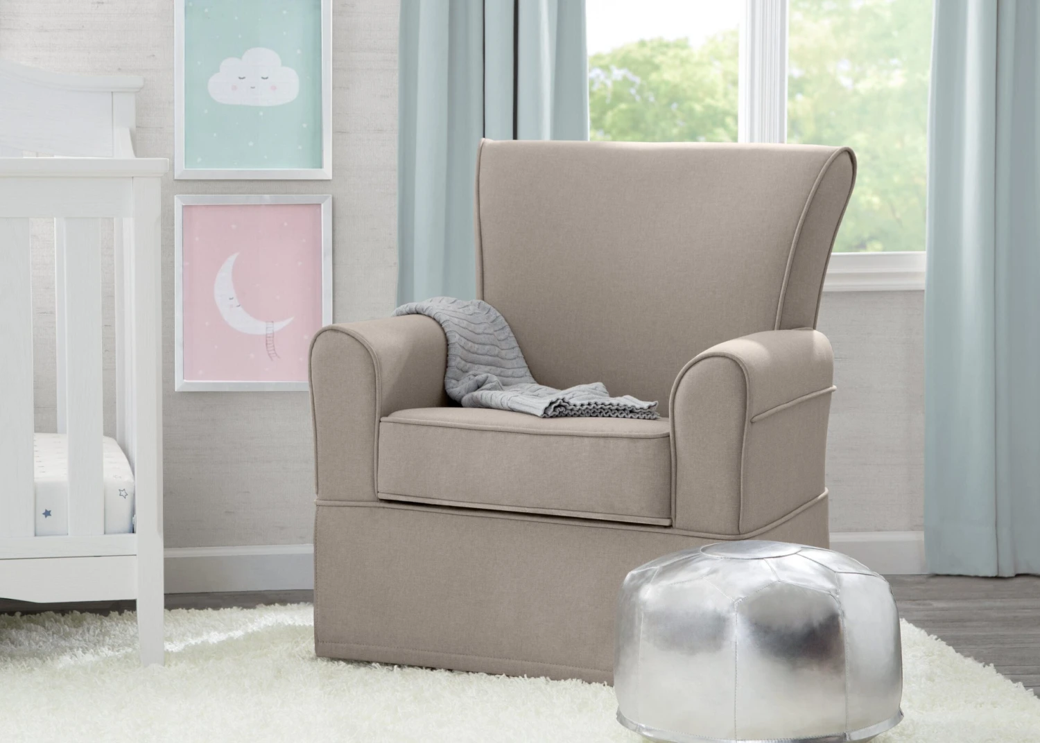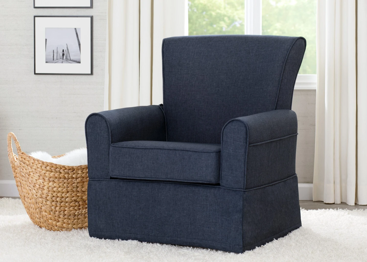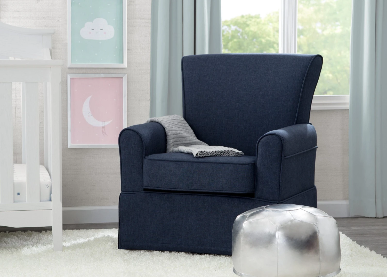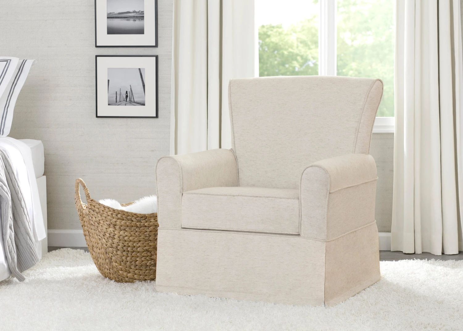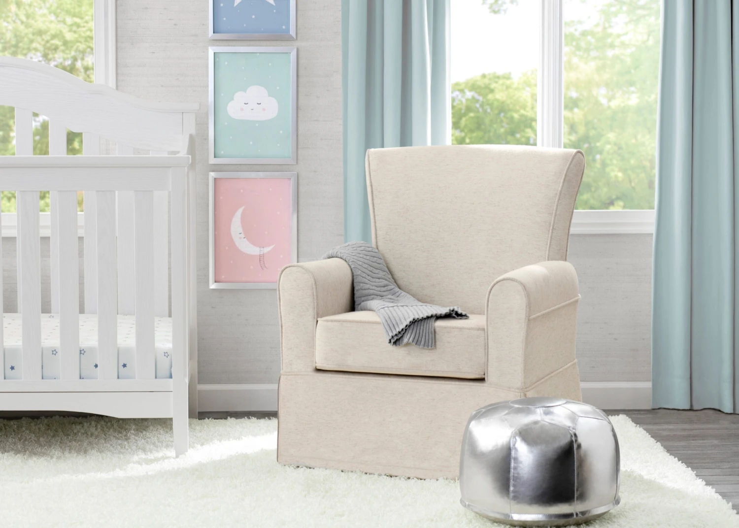 Our Epic Glider is the best plush armchair you can pick for your nursery. The comfortably padded seat rests on a sturdy wooden frame and gently swivels and glides with all-steel mechanisms. Crafted for lasting strength, this glider is a cozy space for you and your baby to relax in
