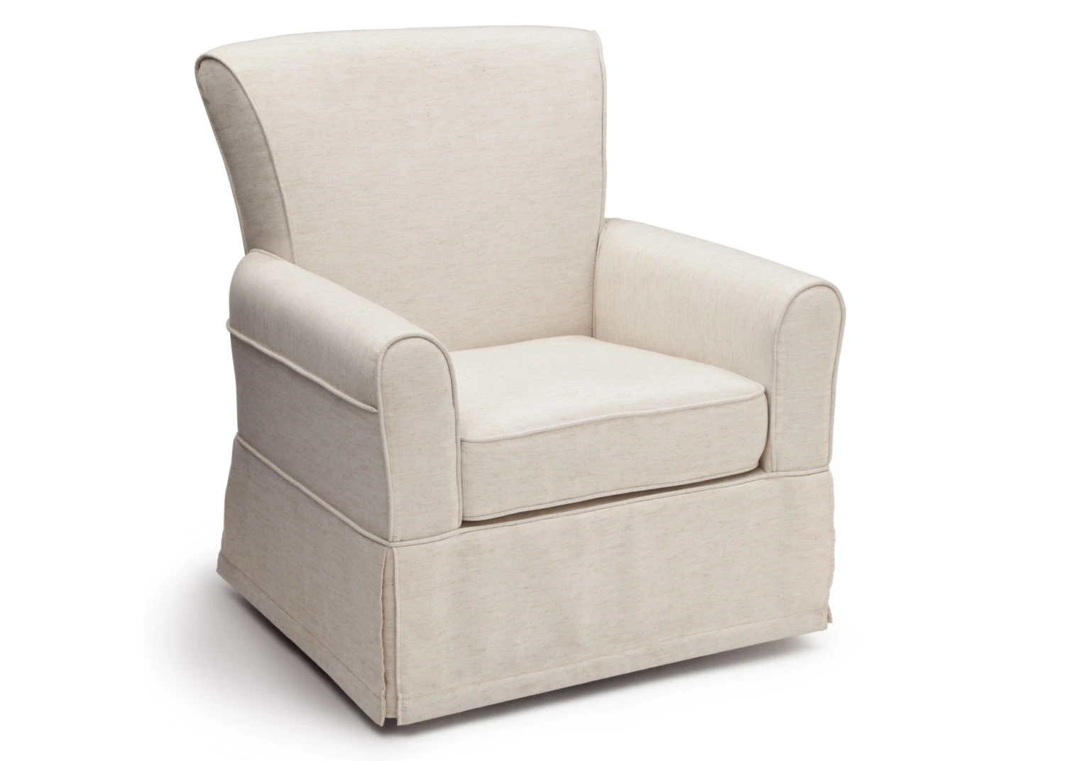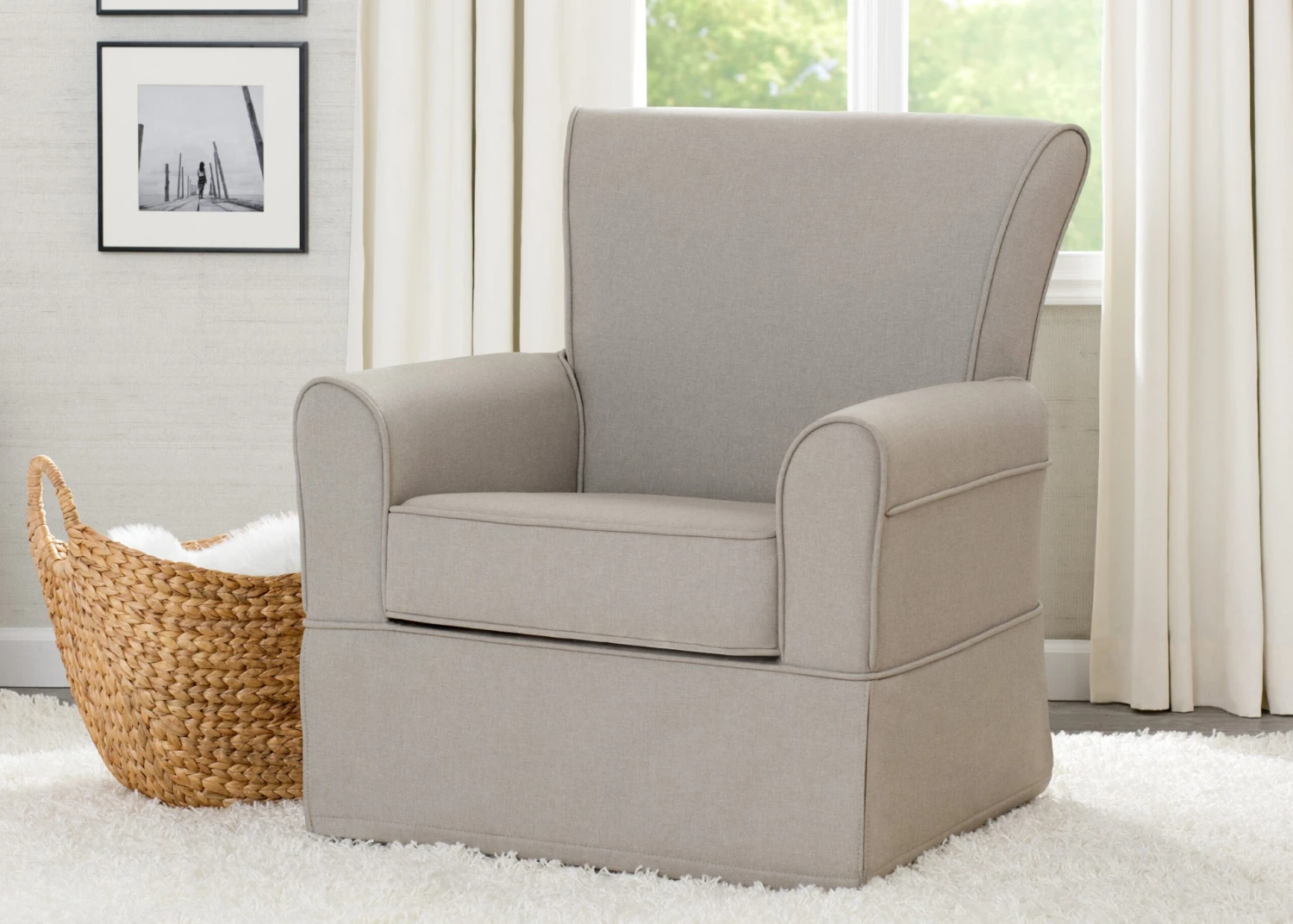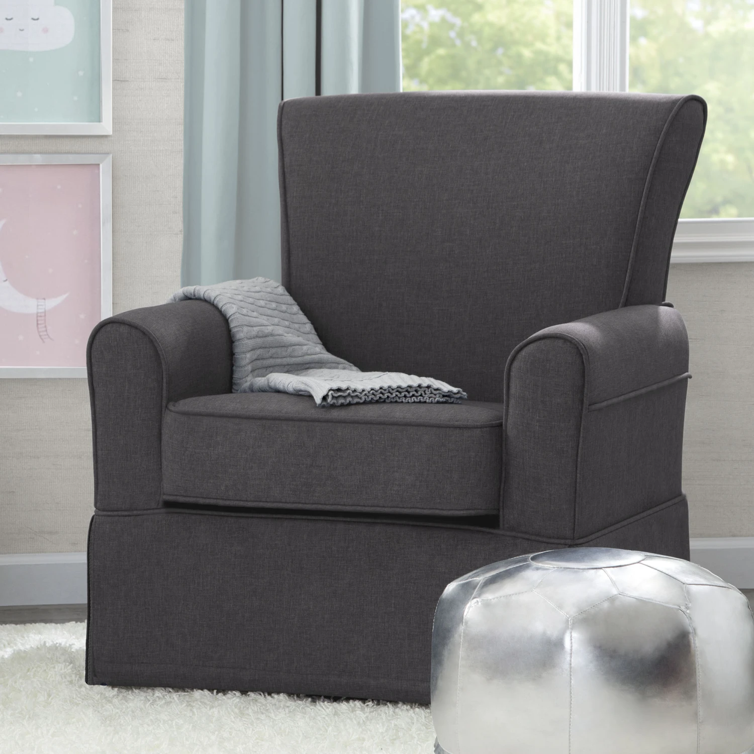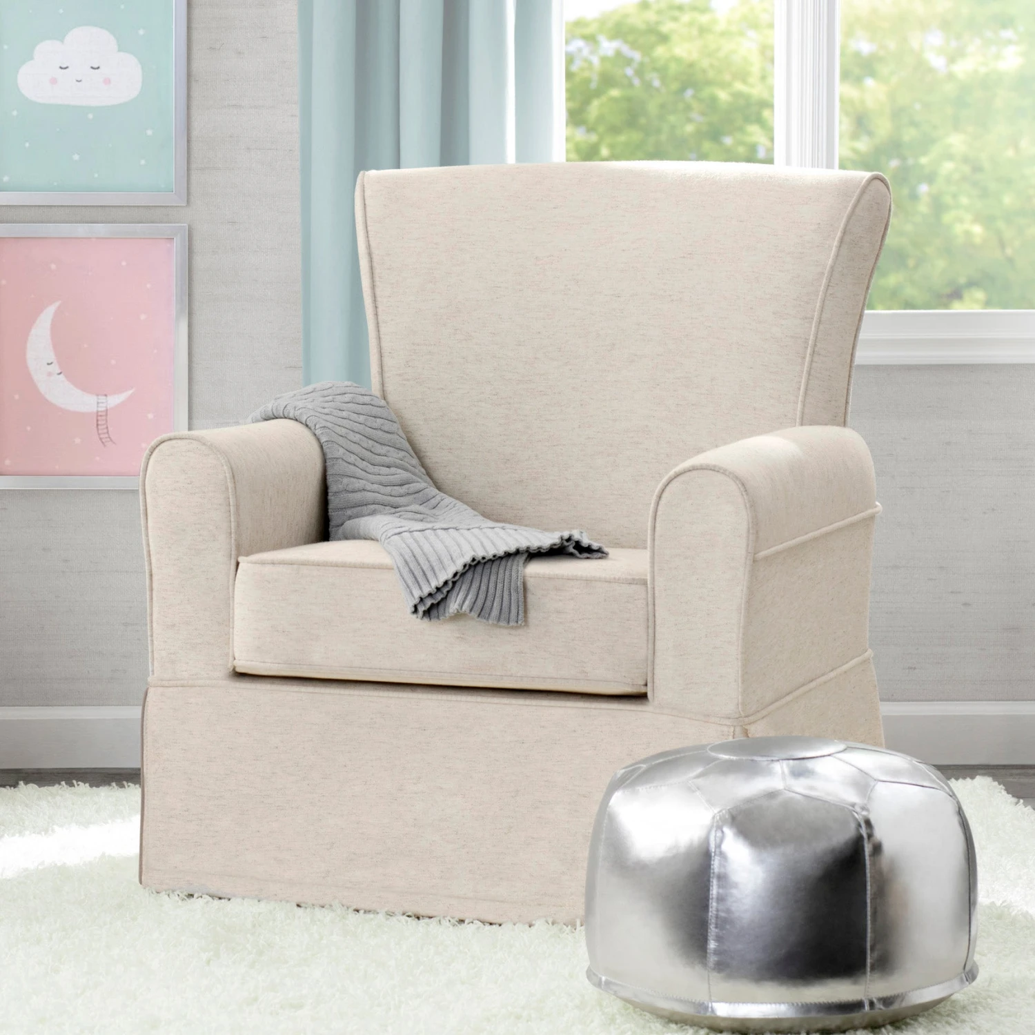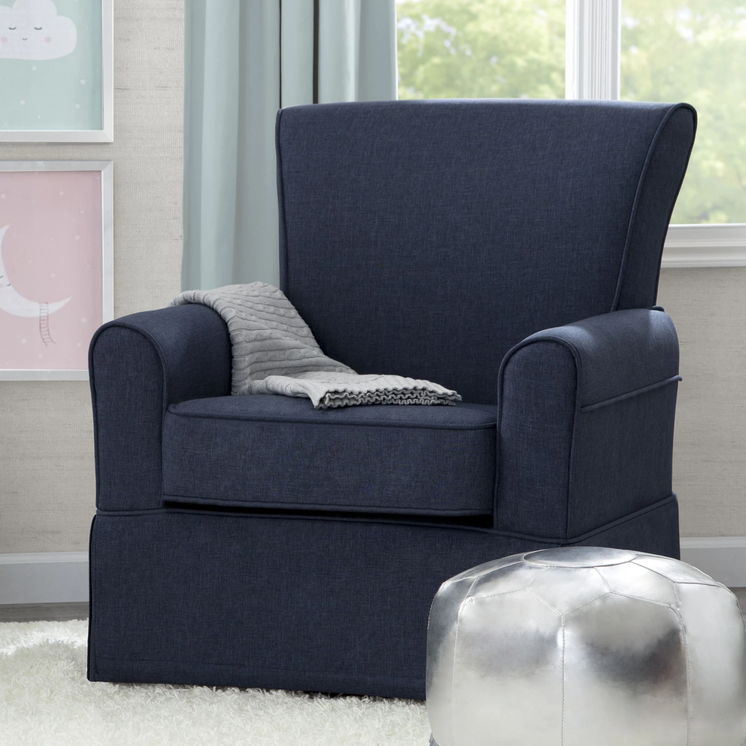Our Epic Glider is the best plush armchair you can pick for your nursery. The comfortably padded seat rests on a sturdy wooden frame and gently swivels and glides with all-steel mechanisms. Crafted for lasting strength, this glider is a cozy space for you and your baby to relax in