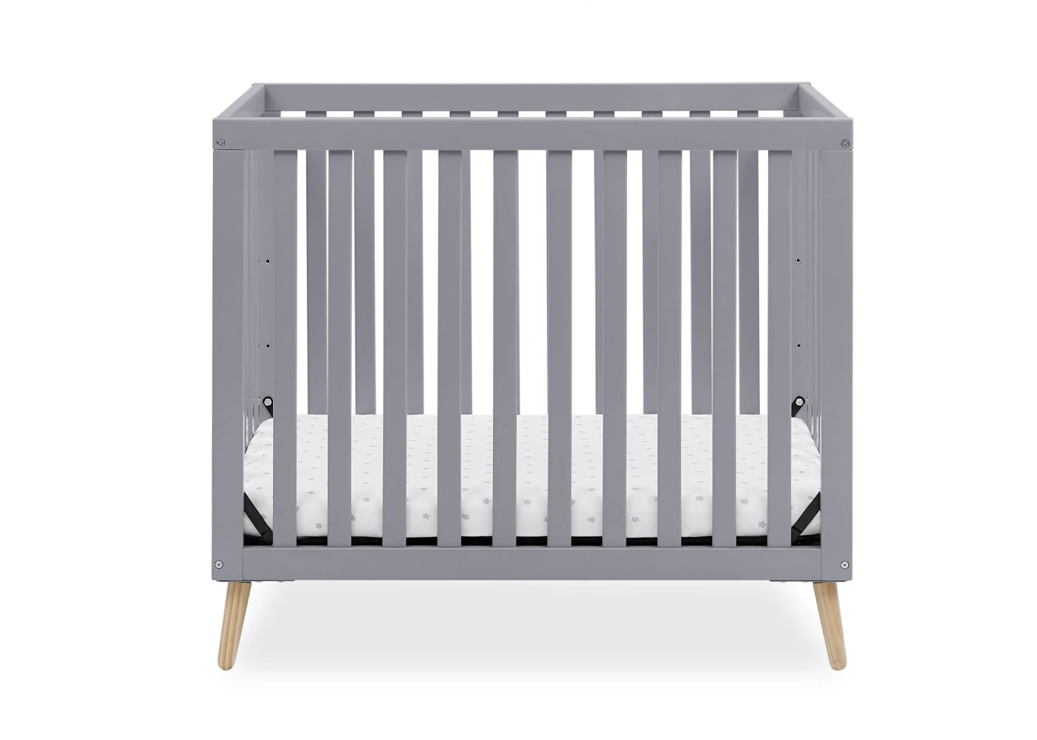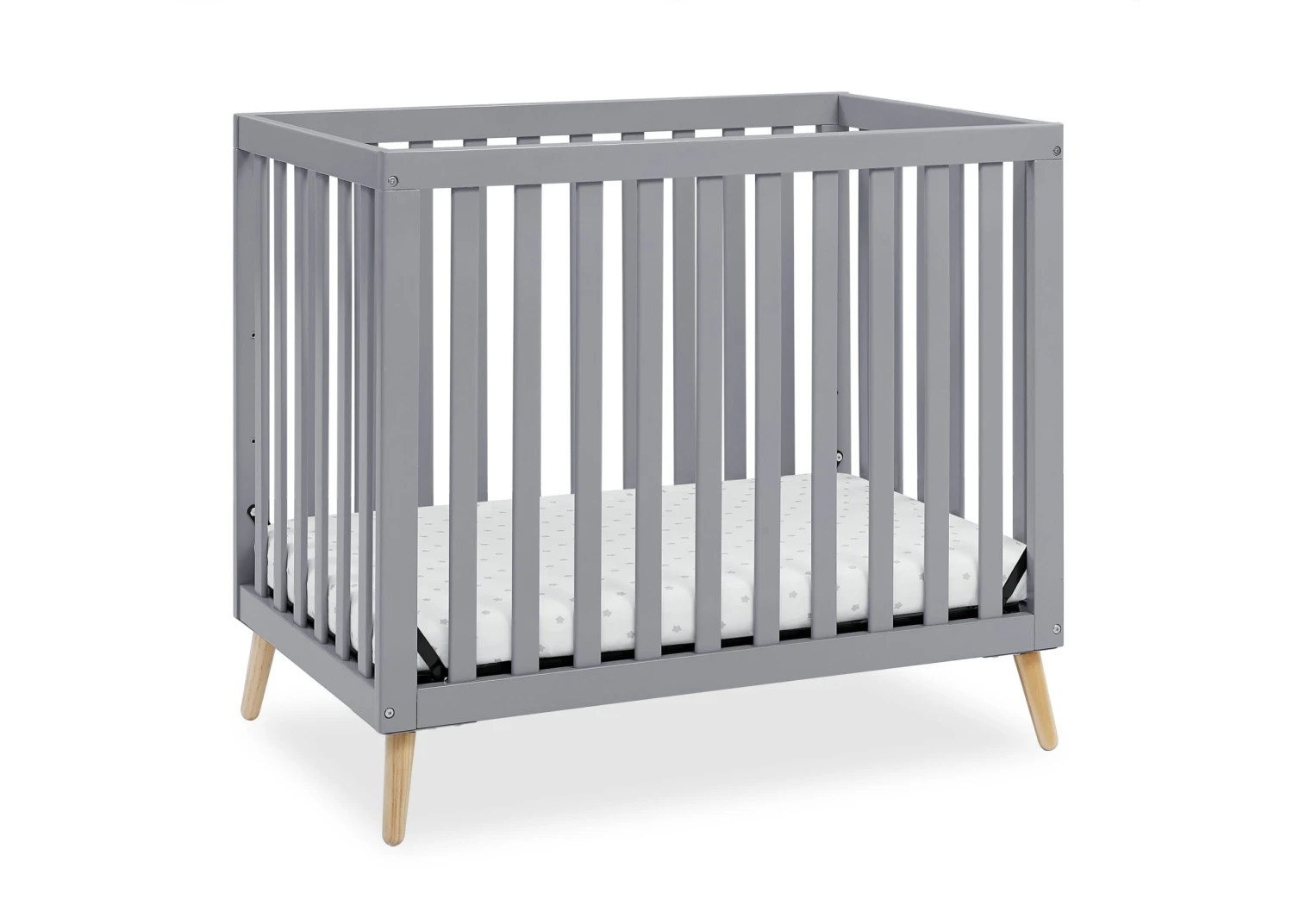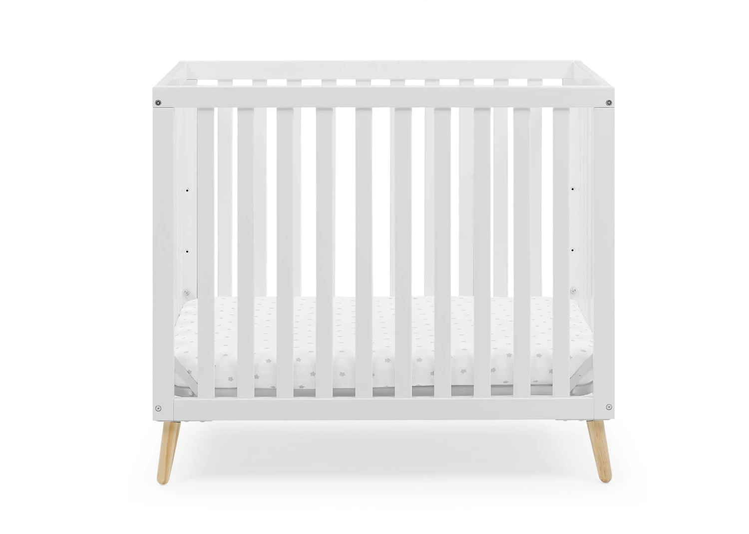 The Essex Convertible Mini Baby Crib with 2.75-Inch Mattress by Delta Children is full of modern style, safety features and craftsmanship, just in a scaled-down size. Designed for urban spaces, smaller nurseries or as a spare crib for grandma and grandpa’s house, this versatile mini crib features angled feet in a natural finish, two adjustable mattress positions that allow you to lower the mattress height as baby grows, plus it includes a comfy, water-resistant crib mattress. Extending its value well past the nursery, the Essex Convertible Mini Baby Crib by Delta Children converts into a twin bed with or without a footboard when the time is right (conversion rail sold separately).