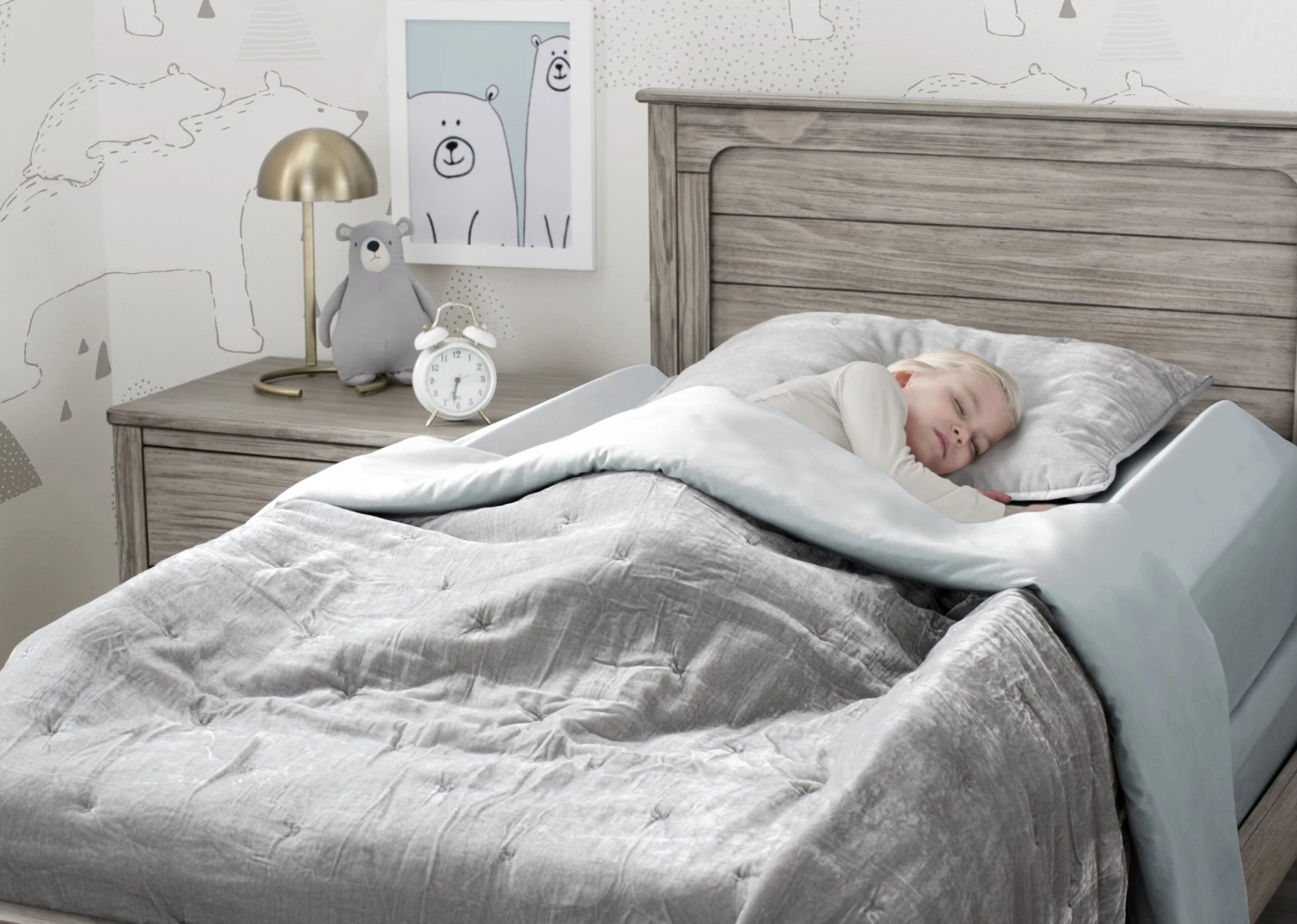 Make the transition from crib to big-kid bed easier than ever with this Delta Children Extra Long Foam Bedrail Bumper! This foam guardrail prevents your child from falling or rolling off the bed while still allowing them the freedom to get in and out on their own—it also allows parents to sit while reading bedtime stories or cuddling. Installation couldn’t be easier: simply unroll the bed bumper, allow it to expand, and slip it under the sheets on any twin, queen or king-sized bed. The bumper’s non-skid silicon bottom and top ensures the rail stays held firmly in place yet it’s super-easy to remove when making the bed or changing sheets. A water-resistant and a removable machine-washable cover makes cleaning up easy.