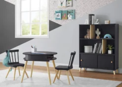 The Hudson Bookcase by Delta Children is a multifunctional, space-saving modern storage piece that’s perfect for kids’ bedrooms, playrooms, even living rooms. This bookcase features two fixed shelves where you can easily display books, toys and more. Additional storage behind the sliding doors is great for storing stuff you want to hide away! The versatile, two-tone look with natural accents and angled legs adds a playful touch. Plus, this bookcase is GREENGUARD Gold Certified, which means it’s built to contribute to safer, healthier indoor air.