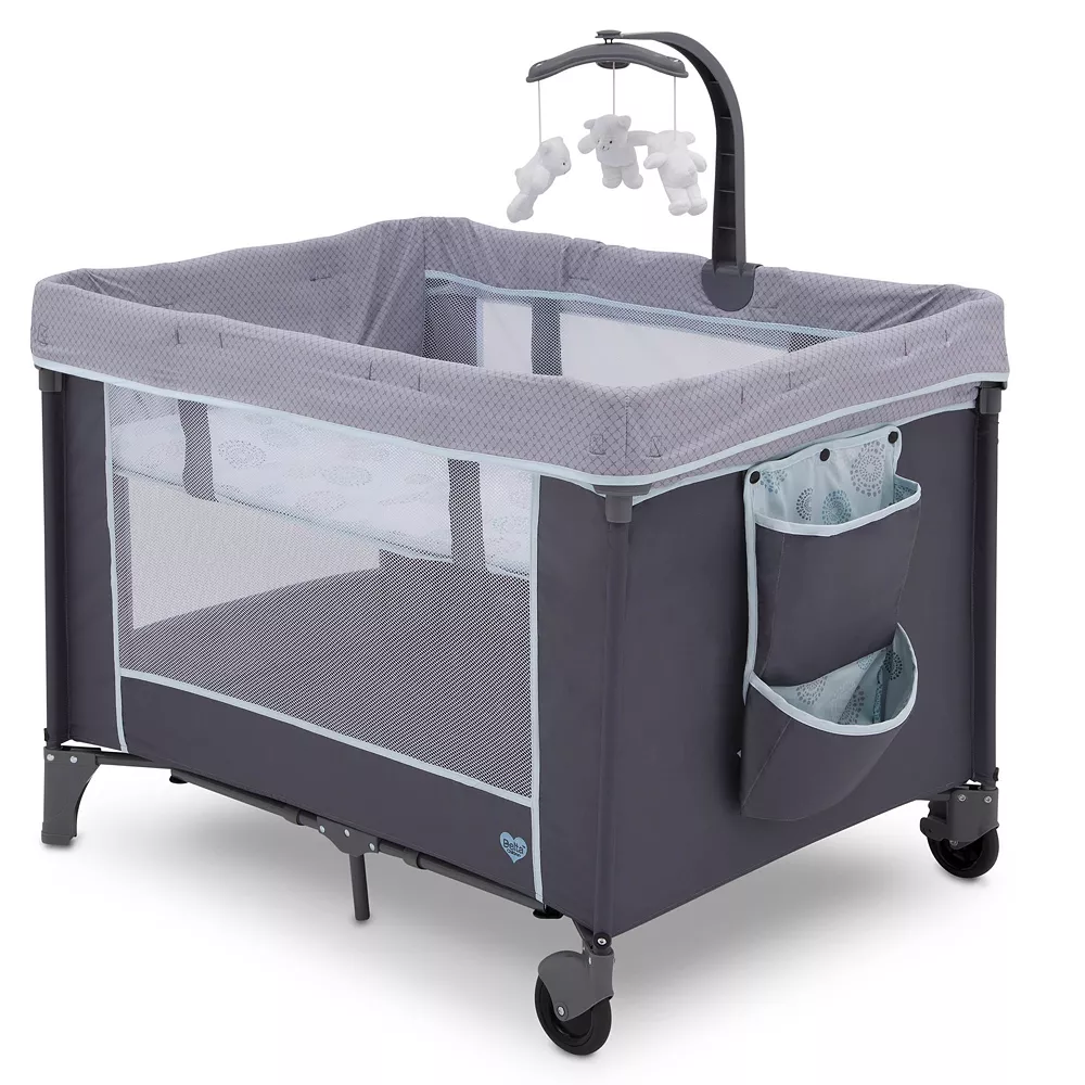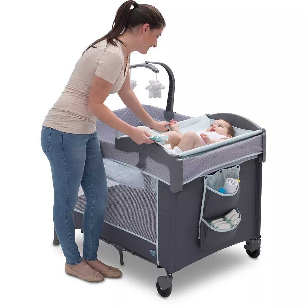 Keep your new baby close for diaper changes and naps with this Delta Children deluxe playard.