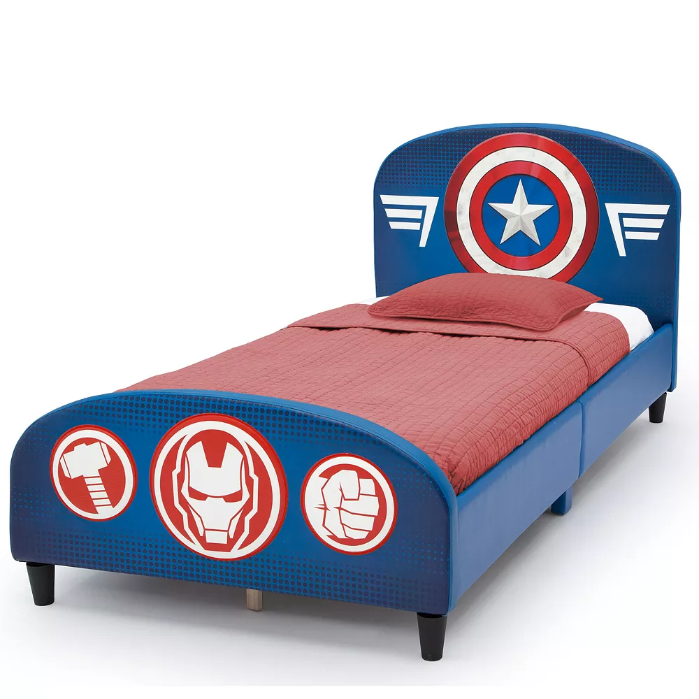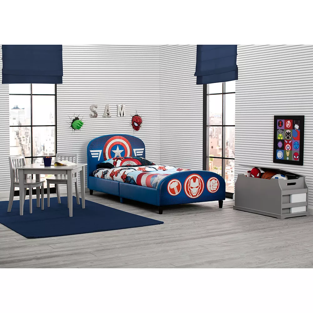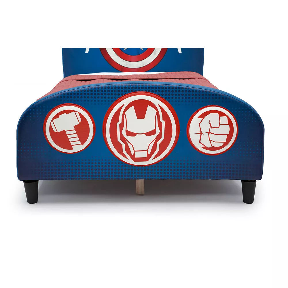 Inspire dreams of adventure and acts of courage with this Marvel Avengers Upholstered Twin Bed from Delta Children.