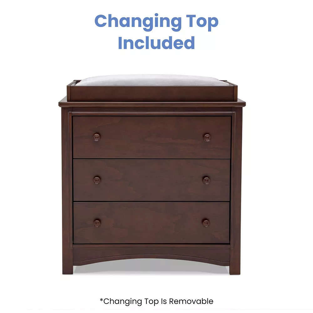 An array of smart design details makes the Perry 3 Drawer Dresser with Changing Top by Delta Children a standout style.