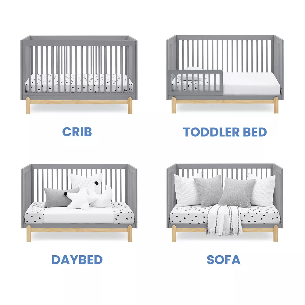 - 4-IN-1 CONVERTIBLE CRIB: Crib converts to a toddler bed, daybed and sofa (Daybed/Sofa Rail included; Toddler Guardrail # W100725 sold separately). Available in Bianca White w/Natural, Grey w/Natural or Midnight Grey w/Natural. Round spindles and natural colored base make it a versatile choice for the modern nursery