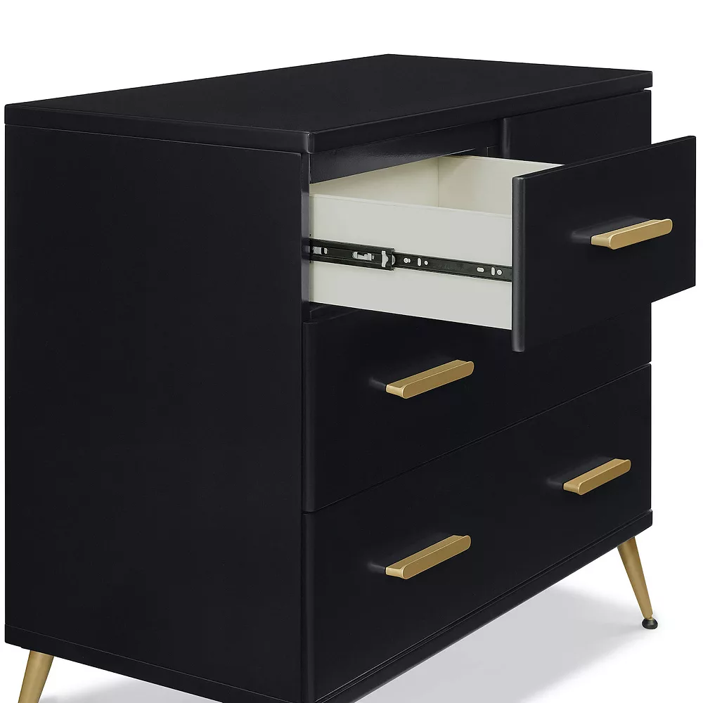 - VERSATILE STORAGE: This features four drawers for plenty of storage space and a removable changing top. Changing Dresser top accepts a changing pad sized 1″ H x 16″W x 32″L (sold separately)