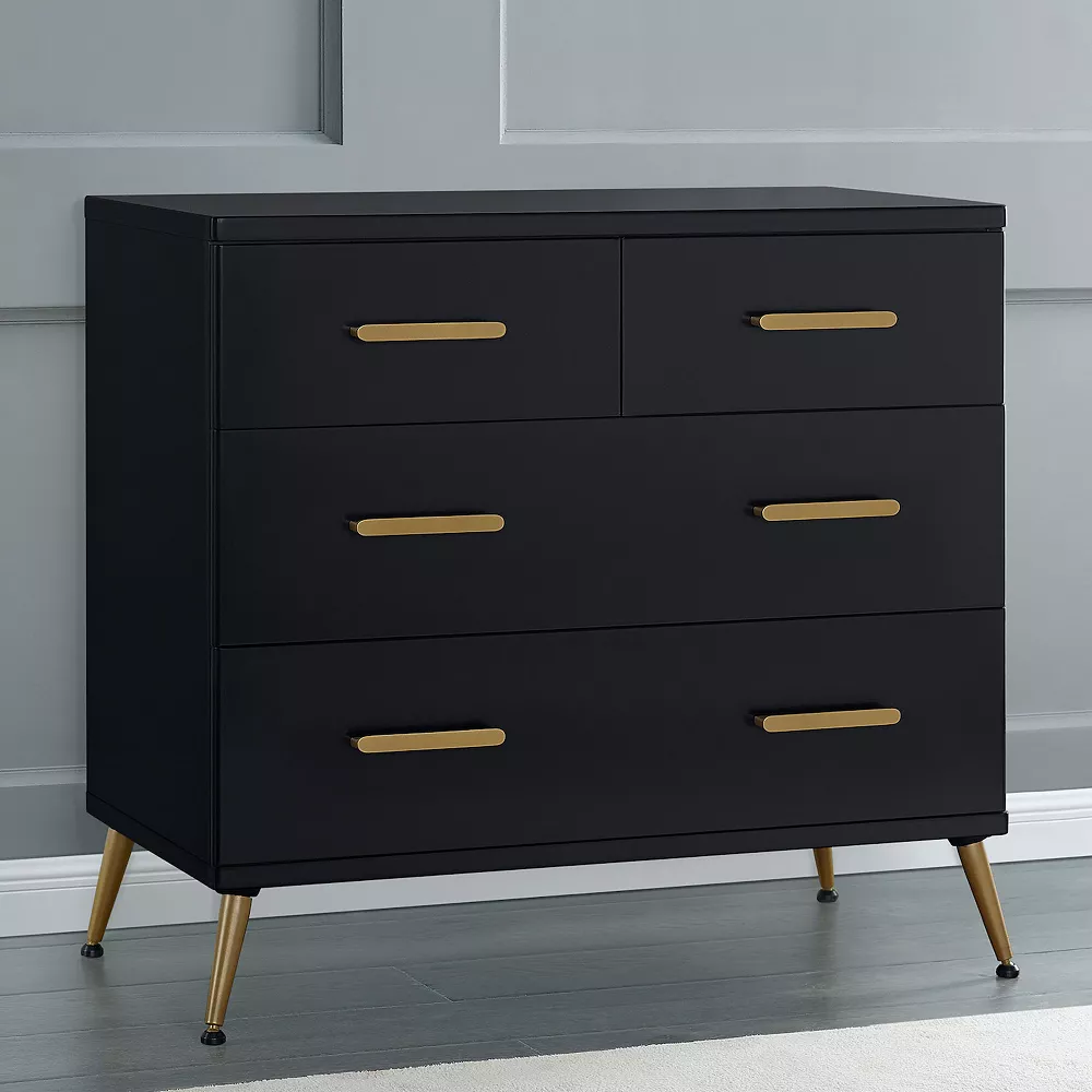 - MODERN DETAILS: Dresser features bronze splayed feet and drawer handles