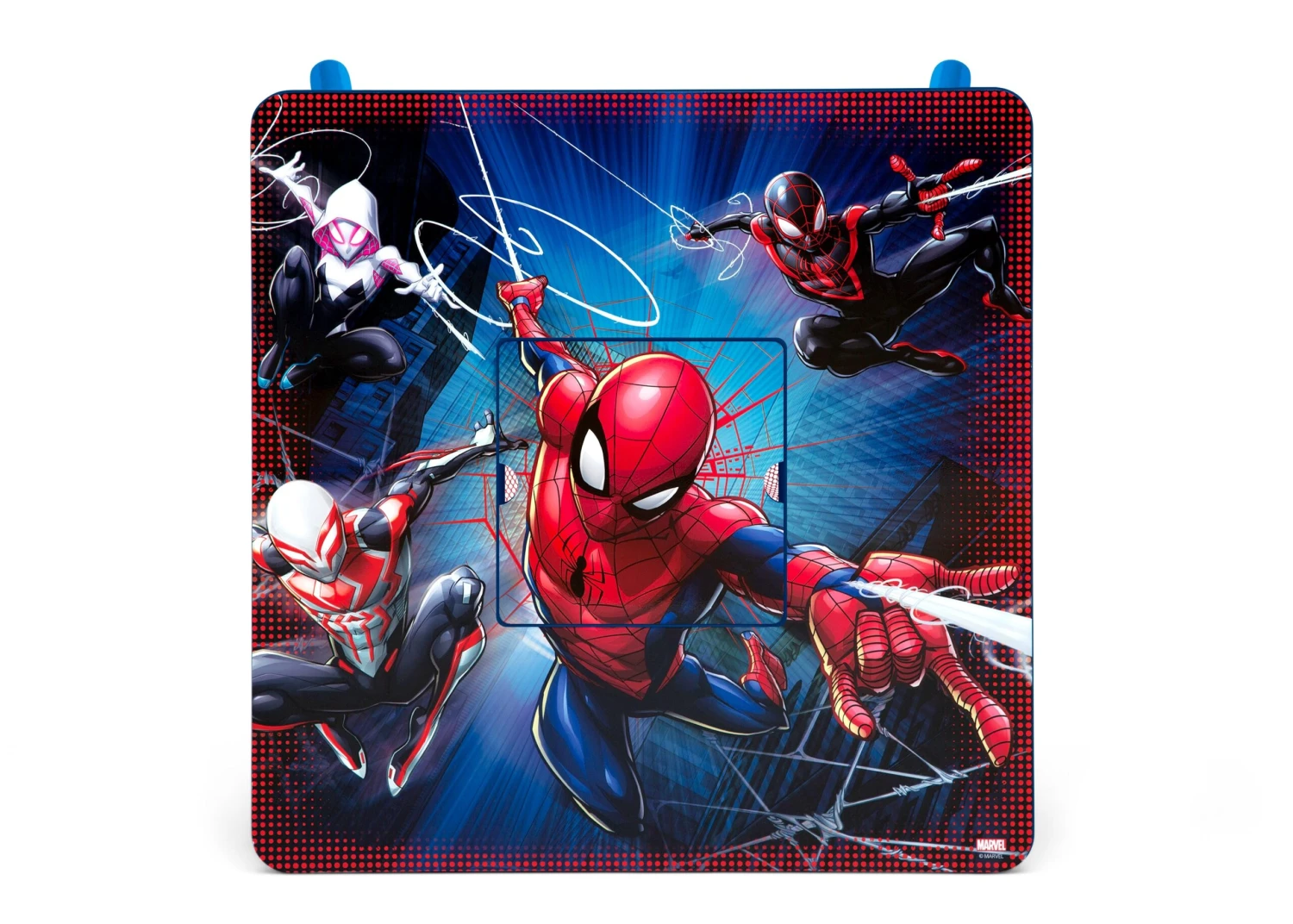 Your friendly, neighborhood web-slinging hero makes everyday activities more fun with this Spider-Man Kids Table and Chair Set with Storage by Delta Children. Featuring colorful graphics of Spider-Man, Miles Morales and Spider Gwen, this table and chair set will be the real hero of your playroom. Designed at the perfect kid-sized height, this table and two chair set is the ideal option for snack time, playtime or homework. Plus, a built-in storage compartment at the center of the table provides the perfect space to keep art supplies.
