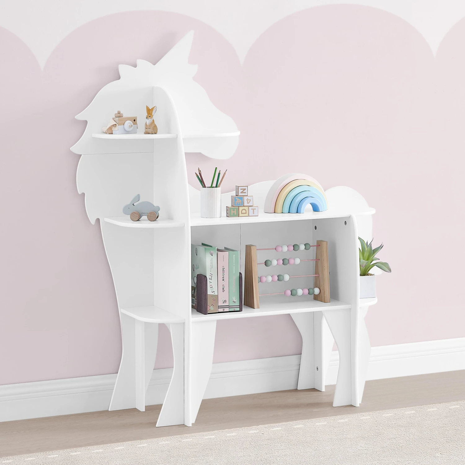 The perfect balance of magical and functional, this Unicorn Bookcase by Delta Children will make any space a bit more whimsical. An adorable addition to any play space or kid’s room, this bookcase features a variety of shelves in different shapes and sizes, giving plenty of space to hold toys, books or display décor. And the bottom shelves are easily accessible, so kids can help with the cleanup. Designed with your child’s safety in mind, this bookcase attaches securely to any wall with the included wall anchor. Plus, it’s GREENGUARD Gold Certified, which means it’s built to contribute to cleaner air for a healthy home.