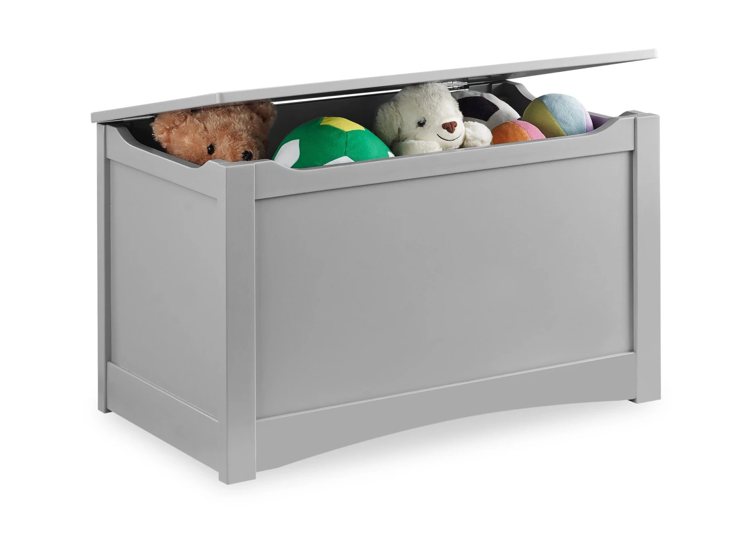The Universal Toy Box by Delta Children is a timeless storage piece that will keep your child’s playroom or bedroom organized without sacrificing style. Kids will love how easily they can stow and store toys, books, games or dress-up clothes. Parents will love the classic design of this toy box that features decorative trim. And since kids play with everything, all toy boxes from Delta Children have rounded edges and feature a safety hinge that allows the lid to close slowly and smoothly. Available in Grey, Bianca White and Dark Chocolate, the Universal Toy Box coordinates with any Delta Children furniture in the same finish.