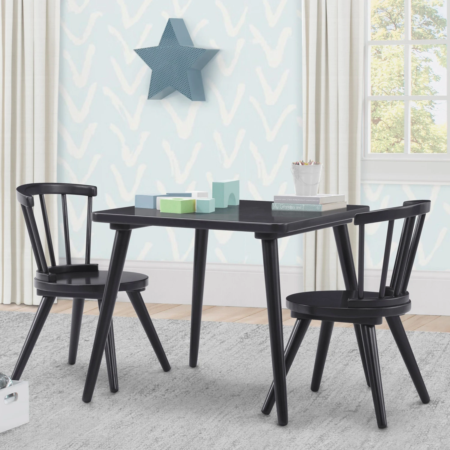 Create a fun and inspiring spot for crafts, homework or snack time with the Windsor Table & 2 Chair Set by Delta Children. Perfectly sized for young children, this practical play table features a spacious square tabletop and two coordinating chairs with vertical spokes and curved backs. Constructed from strong and sturdy wood, this long-lasting table and chair set complements any child’s bedroom or playroom and is stylish enough to be placed in shared living spaces. To add two additional seats to this table, please purchase the Delta Children Windsor 2-Piece Chair Set (sold separately).