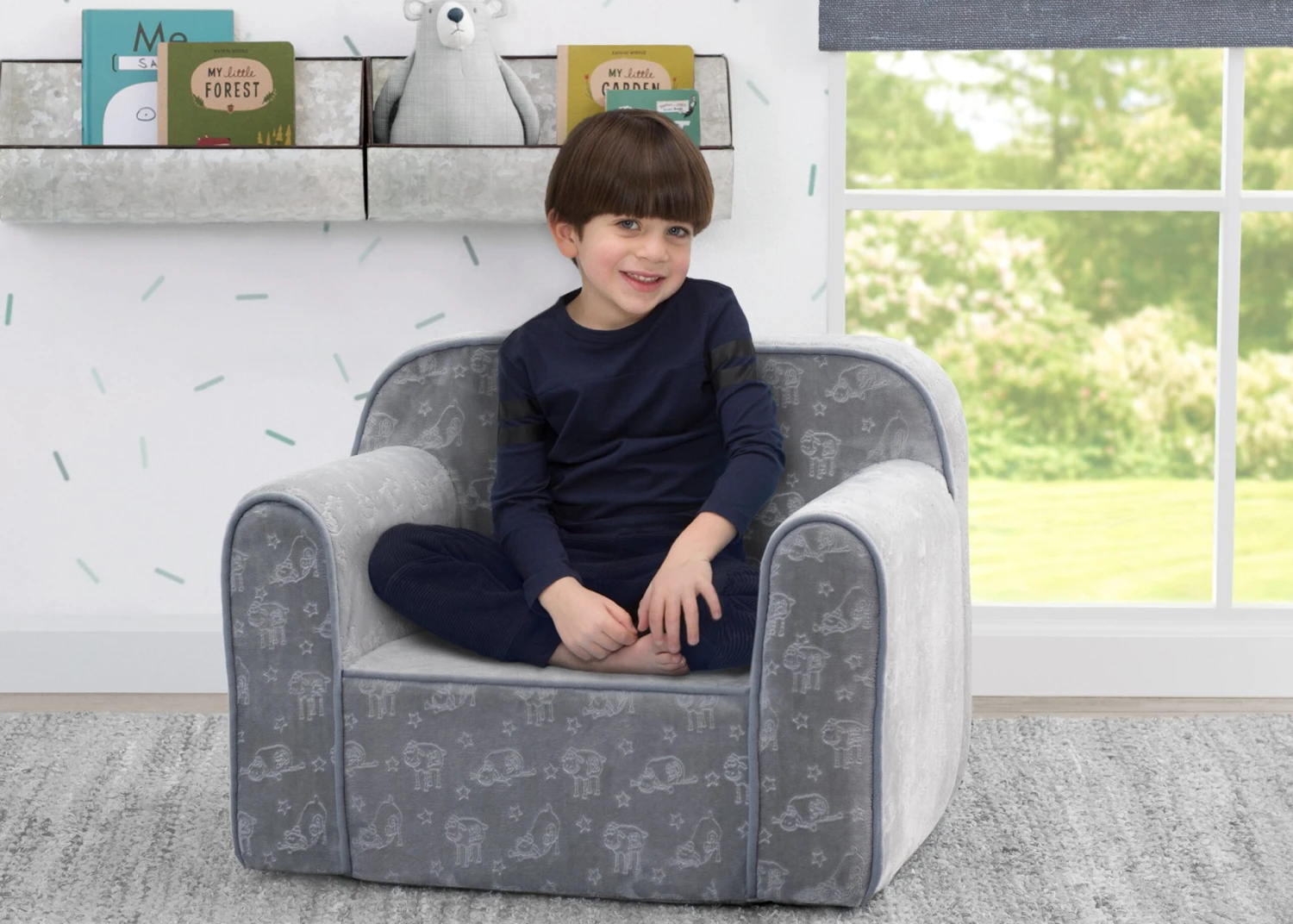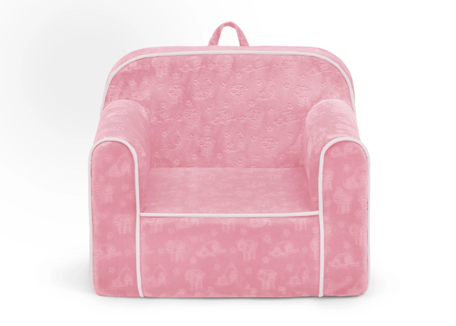 Cozy up to Serta’s Perfect Sleeper Foam Chair for Kids. A snuggly spot for reading, watching TV or just hanging out, this supremely comfy chair features a velvety slipcover with embossed sheep pattern that adds texture and comfort, plus it’s removable and machine washable for easy cleaning. Perfect for the playroom, living room or your child’s bedroom, this kids’ foam chair goes anywhere they do–the lightweight design with handle on top is easy to move from room to room. Recommended for ages 18 months+.